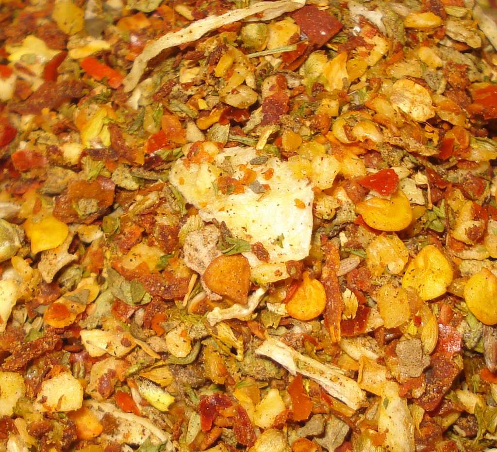 Zutaten: Knoblauch, Chilies, Petersilie, Pfeffer, Zwiebeln, Oregano, Basilikum