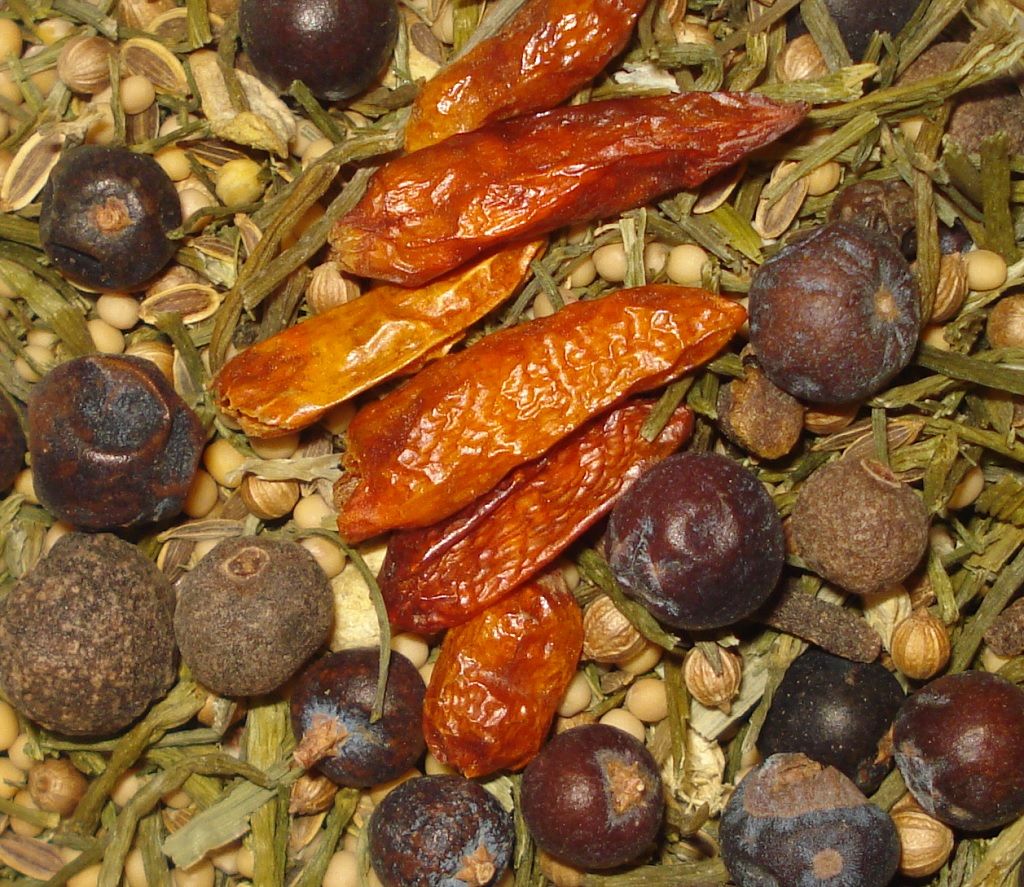 Zutaten: SENFkörner, Dill, Wacholderbeeren, Koriander, Pfeffer, Ingwer, Piment, Chilie, Nelken, Paprikaflocken