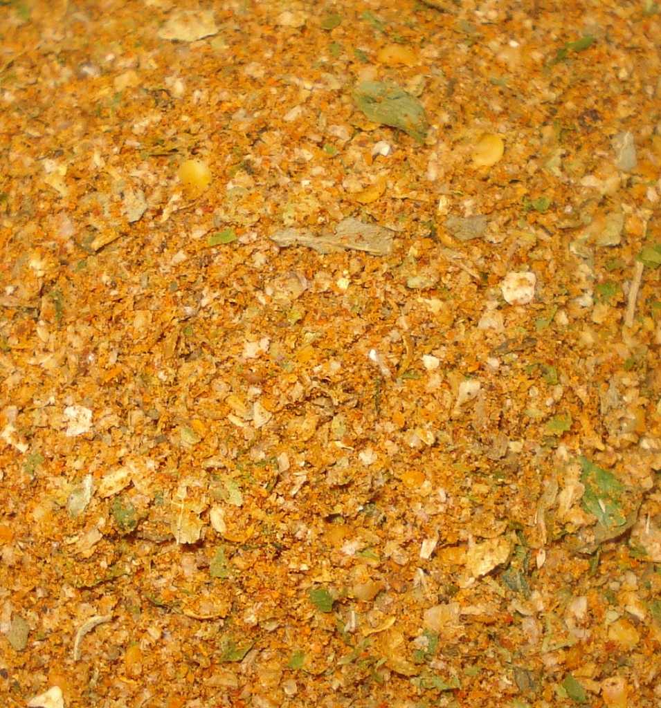 Zutaten: Zwiebeln, Pfeffer, SENFmehl, Meersalz, Paprika, Koriander, Chili, Muskat, Kümmel, Petersilie, Majoran, Piment, Basilikum