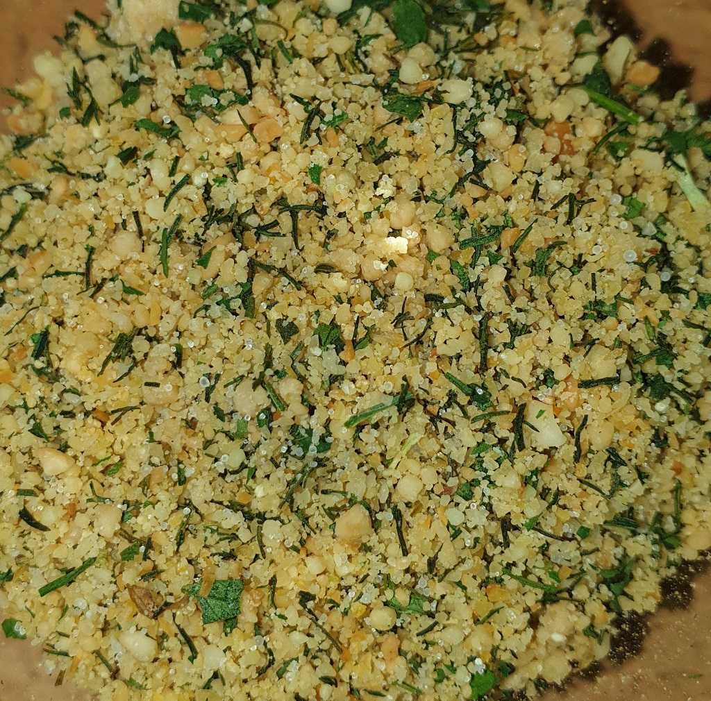 Zutaten: Knoblauch, Cashewkerne, Dill, Petersilie, Salz