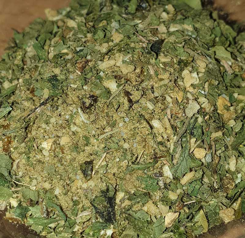 Zutaten: Korianderblätter, Paprika grün, Zwiebeln, Salz, Rohrzucker, Pfeffer, Knoblauch, Petersilie, Thymian, Chili grün, Zitronensäure, Cumin