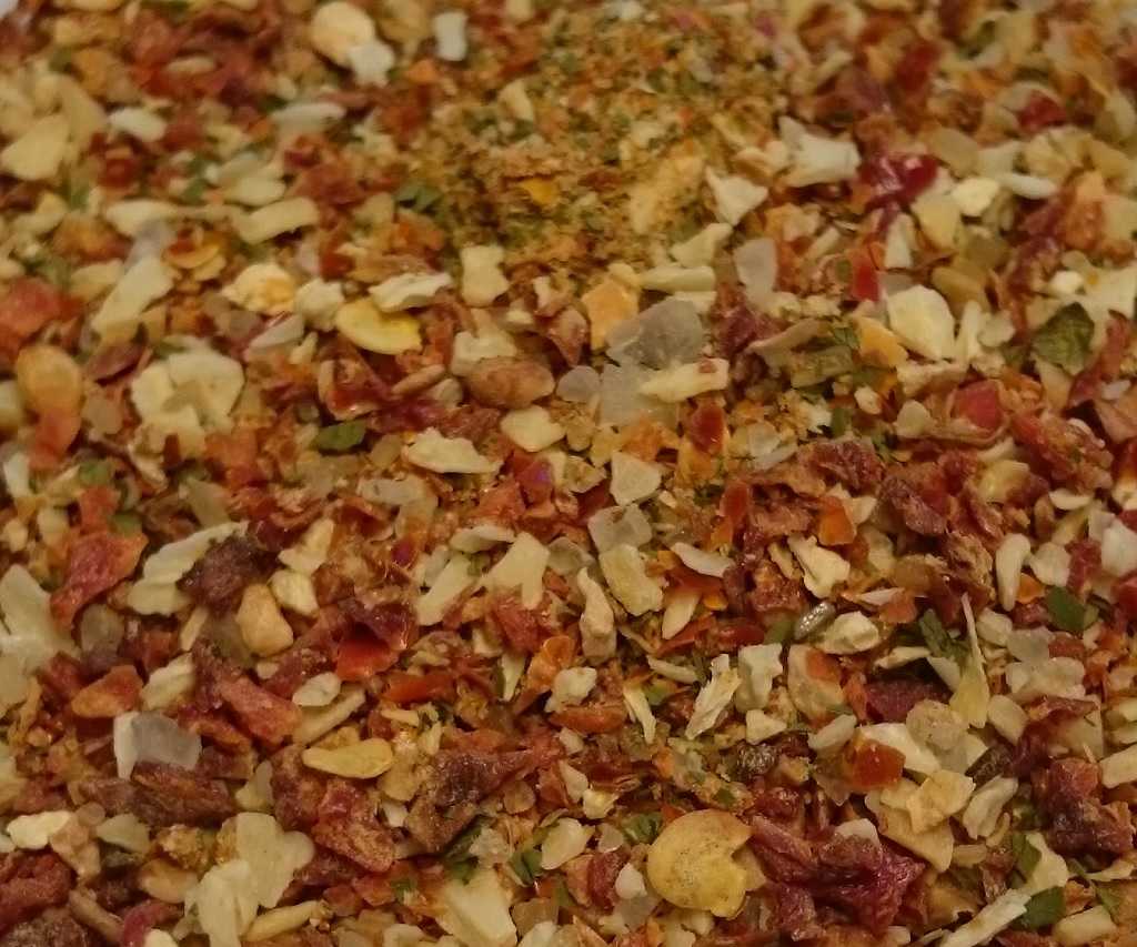 ZZZumba gibt Speisen einen fruchtigen, scharfen und zugleich süßlichen Geschmack. Diese Gewürzmischung eignet sich hervorragend für Salsas, Tomatengerichte, Dips und zum Würzen von Fleisch.